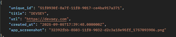 The unique_id return from this API can be used on other APIs: /report-view-by-id, /report-advanced-create, /app-remove. In order for those three APIs to successfully complete you must have the app_id (unique_id). This means that you would need to run the /app-view API first in order to get the app_id (unique_id) you wish to make reports or screenshots for. The return section above describes what variables the unique_id can be used for.